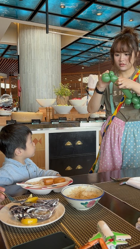 A talented balloon sculptor added a touch of whimsy to our meal, captivating our children with her amazing creations (she was so dedicated that she even took on the challenge of sculpting a plane even though it was her first time sculpting one). Meanwhile, I happily indulged in the free-flow Tattinger champagne, a perfect complement to the delicious seafood.